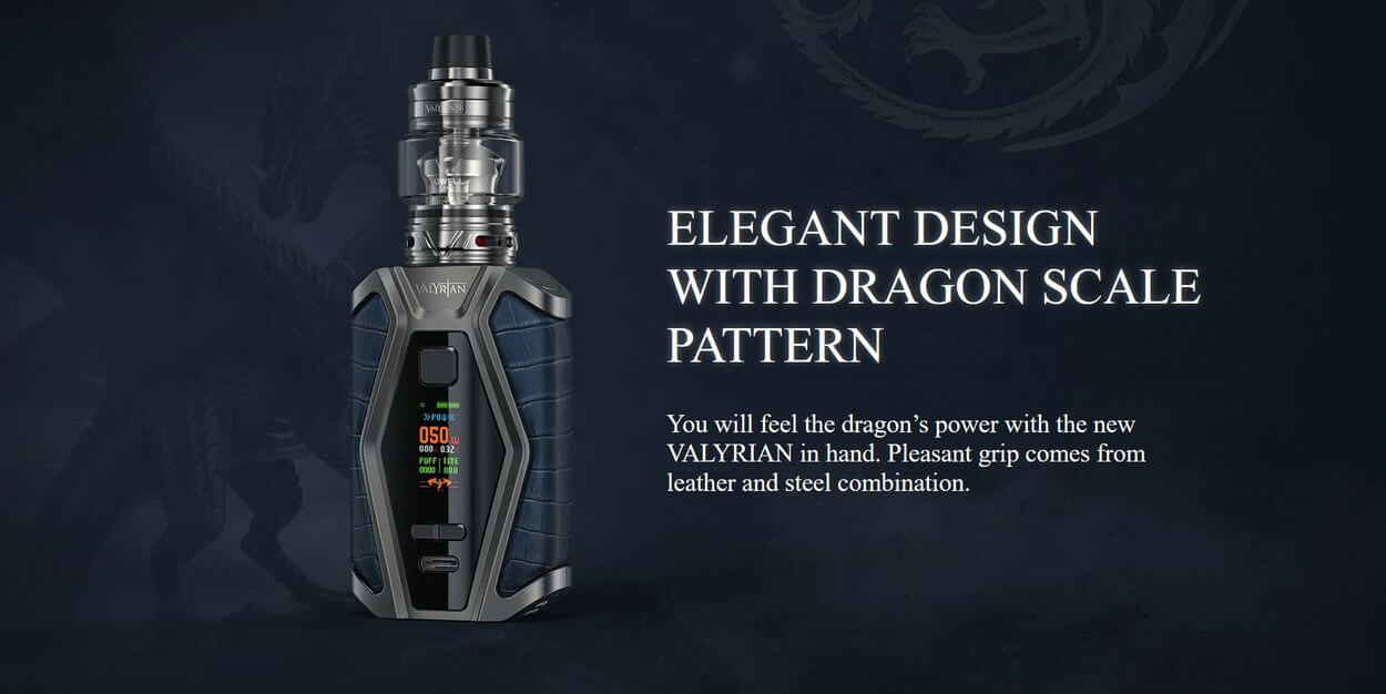Das Valyrian III Kit ist der neueste Nachfolger von dem beliebten Valyrian Kit. Inspiriert durch den Schuppenpanzer eines Drachen und einer Ritter Rüstung hat das Valyrian III nicht nur einen besonderen Look erhalten, sondern liegt auf Grund der Form und der Materialien sehr gut, vor allem rutschfest, in der Hand.